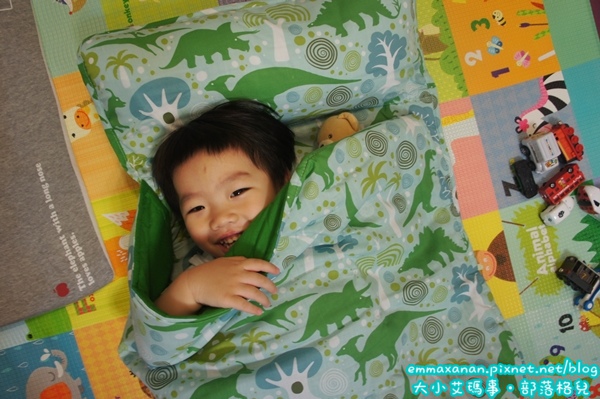 一整個晚上 Ryan 都跟睡袋開心地滾來滾去~